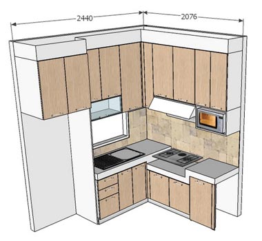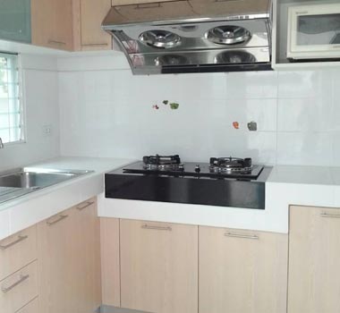ชุดครัว Built-in โครงซีเมนต์บอร์ด หน้าบาน Laminate ลายไม้