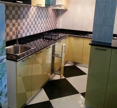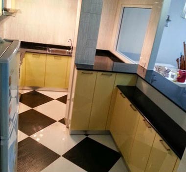 ชุดครัว Built-in โครงซีเมนต์บอร์ด หน้าบาน Hi Gloss สีเหลืองอ่อน