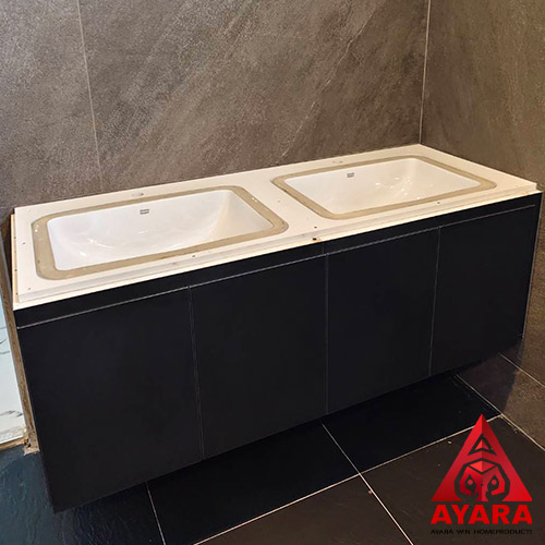 เคาน์เตอร์ Counter โครง Plaswood ปิด Laminate สีเทาเข้ม